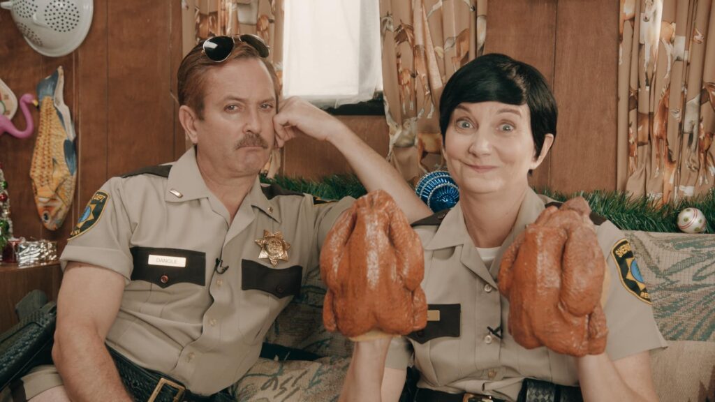 Our concept: “31 Days of Going Home for the Holidays.” Join Dangle, Raineesha, Jones, and Weigel of RENO 911 as they traverse America, on their way home for the holidays in a decked-out RV that barely goes over 10 miles an hour.