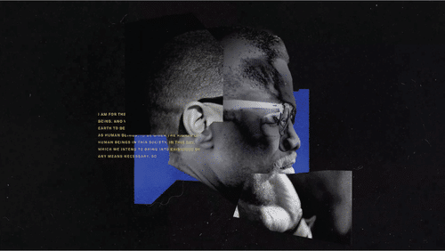 As we cycle through the different images, we will hear the voice of Laurence Fishburne speaking in the first person as Malcolm X. At the end of the last one, the image of Malcolm will transition to reveal Laurence’s face.