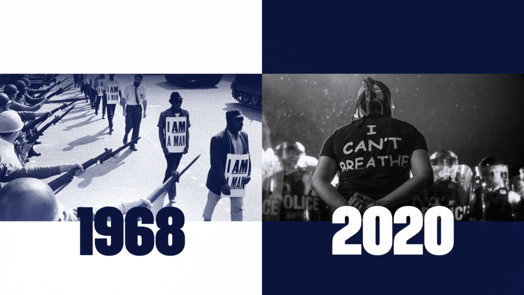 Using archival footage, illustration, and typography, we see the parallel between the civil rights movement and activism today. As we cut back and forth between old footage and new footage,